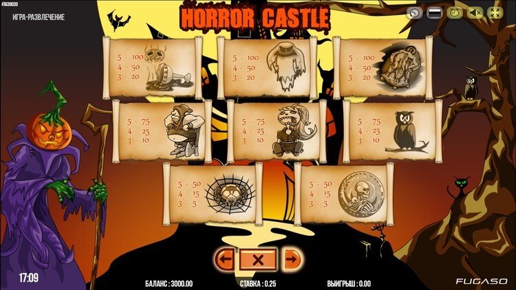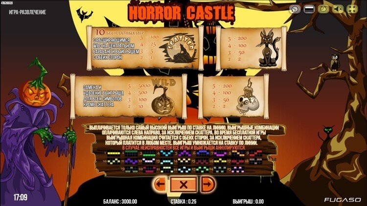 Таблица выплат Horror Castle