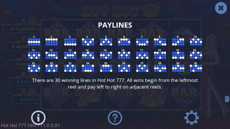 | Любая Семерка, Бар с пятеркой | 10 | 50 | 100 |