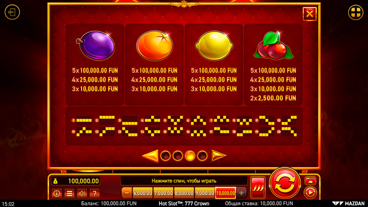 Таблица выплат Hot Slot: 777 Crown