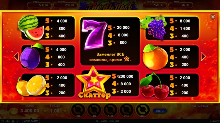 | Звезда (Scatter) | 2 000 | 8 000 | 200 000 |