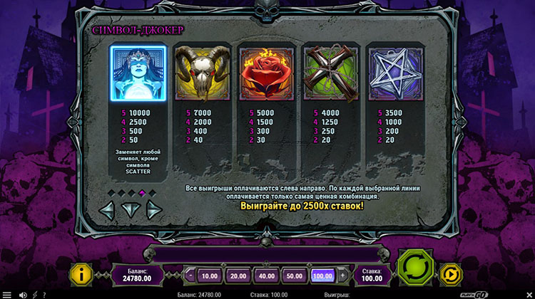 | Провидица (Wild), Дом судьбы (Scatter) | 50 | 500 | 2500 | 10 000 |