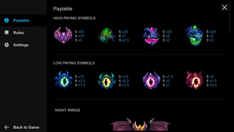 Таблица выплат Hungry Night