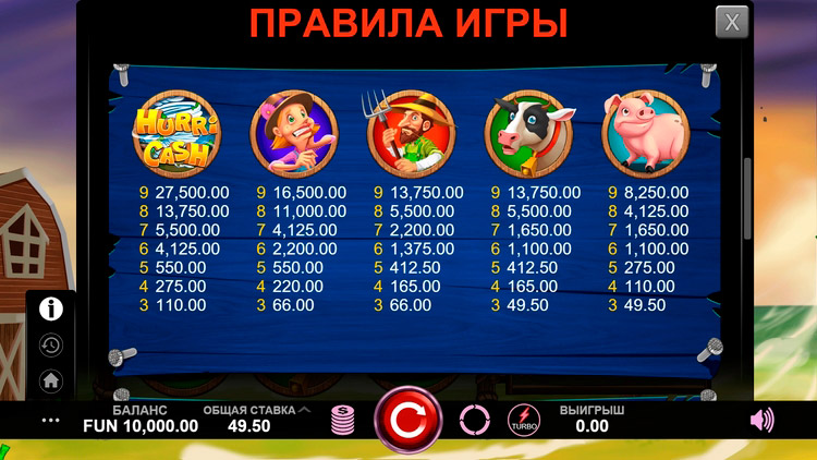 Таблица выплат Hurricash