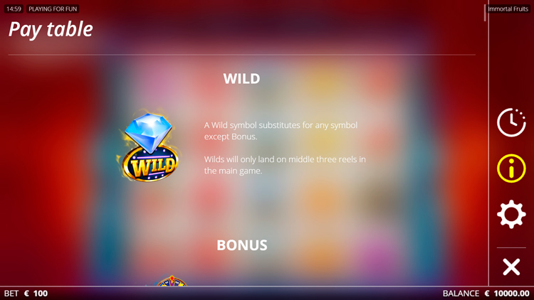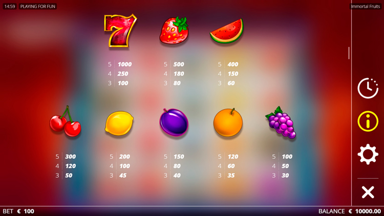 Таблица выплат Immortal Fruits