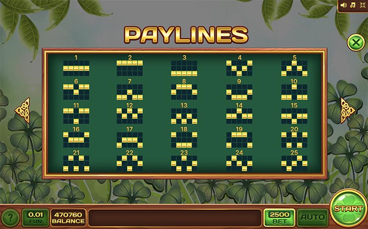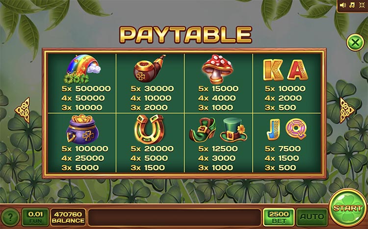 Таблица выплат Irish Mania