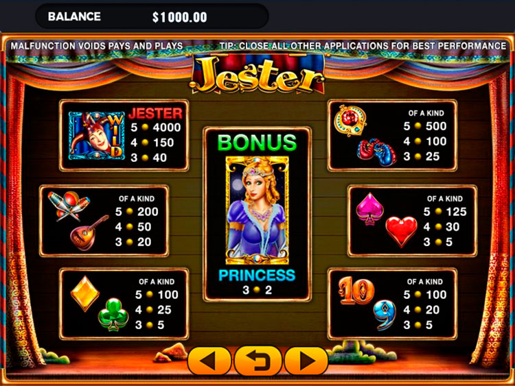 Таблица выплат Jester