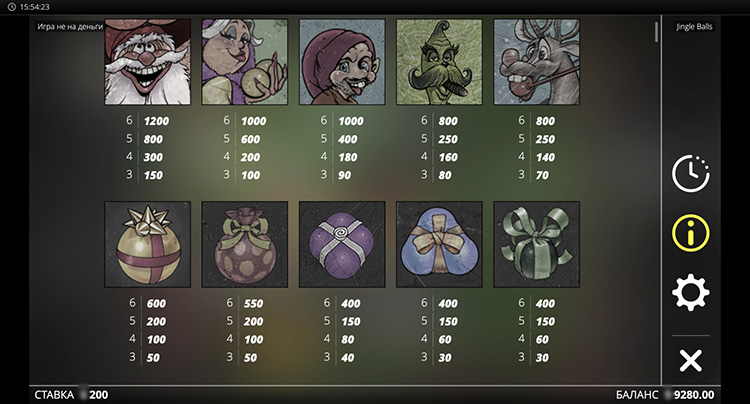 Таблица выплат Jingle Balls