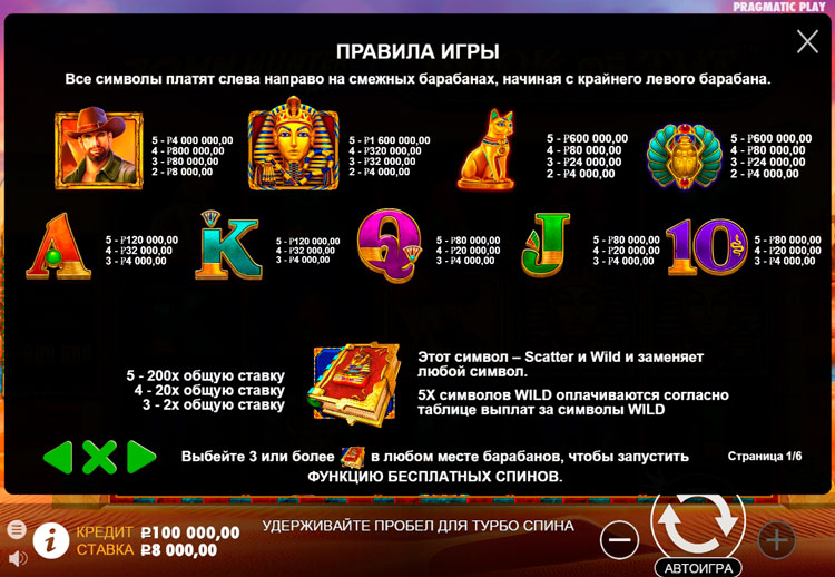 | Маска Фараона | 4 000 | 32 000 | 320 000 | 1 600 00 |
