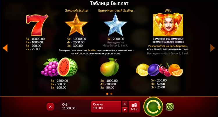 | Золотая звезда (Scatter) | - | 300 | 2 000 | 10 000 |