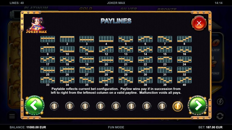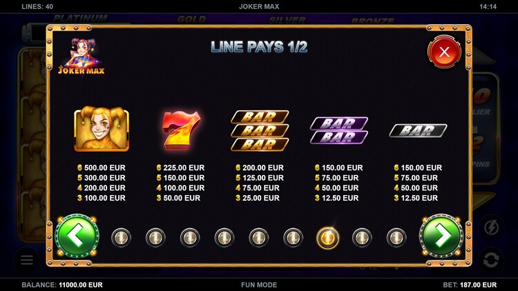 Таблица выплат Joker Max