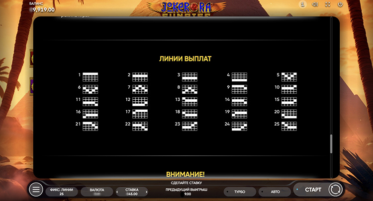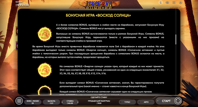 Таблица выплат Joker Ra: Sunrise