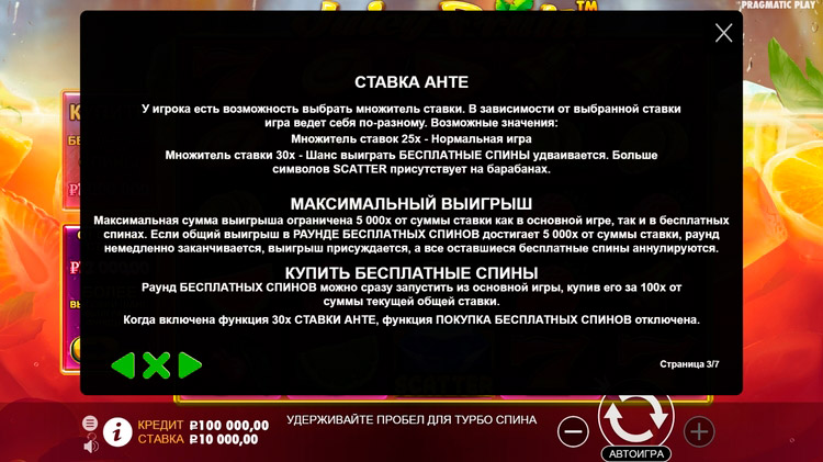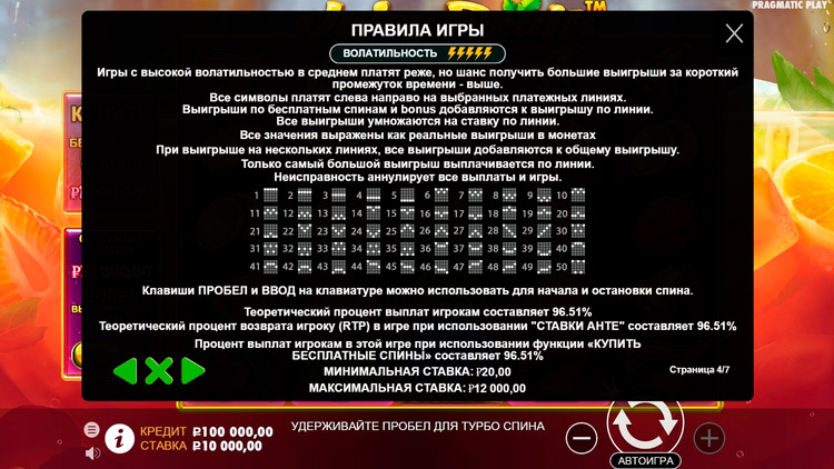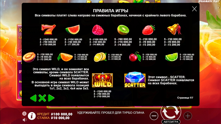 Таблица выплат Juicy Fruits