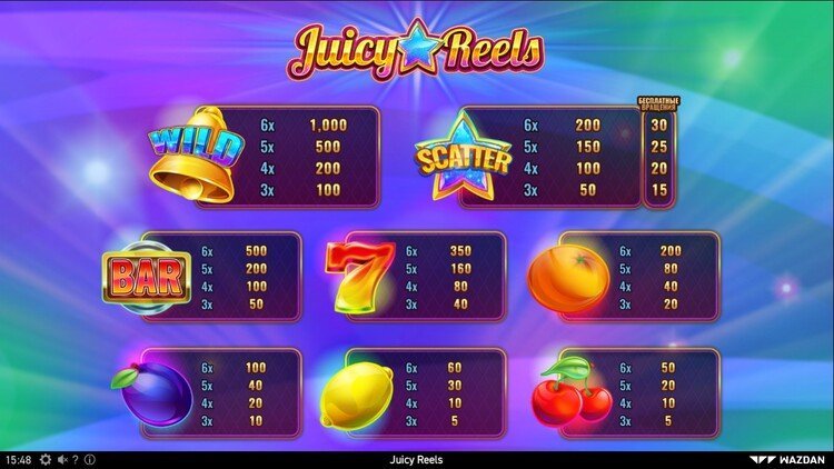 Таблица выплат Juicy Reels