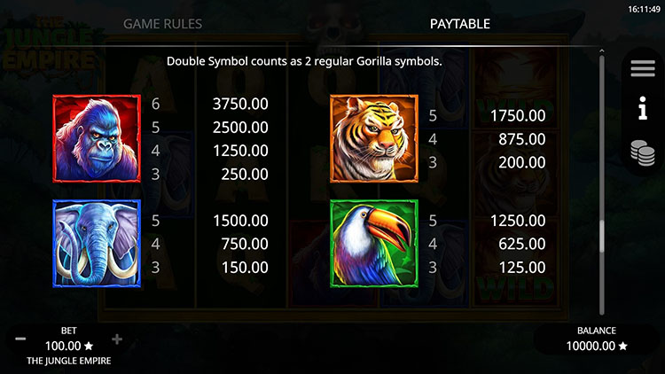 Таблица выплат The Jungle Empire