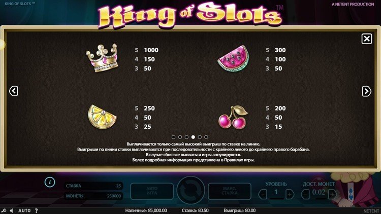 Таблица выплат King of Slots