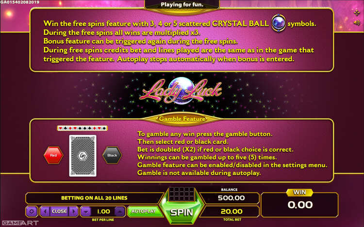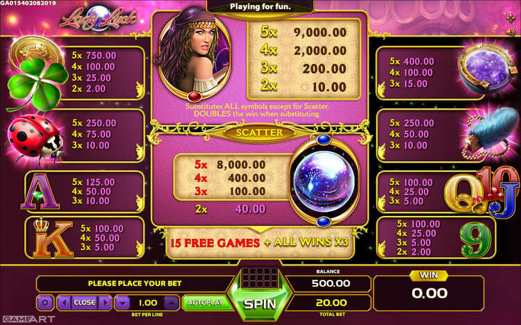Таблица выплат Lady Luck