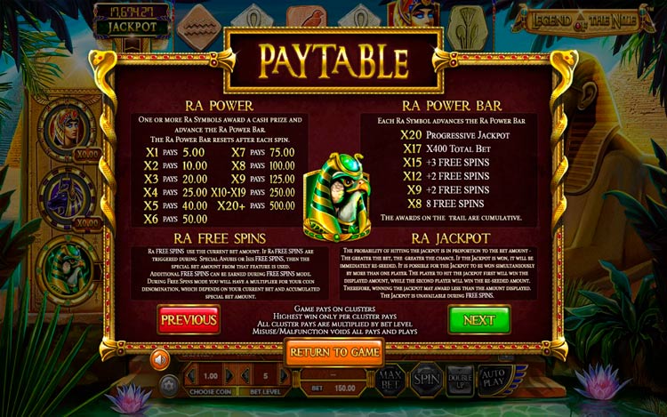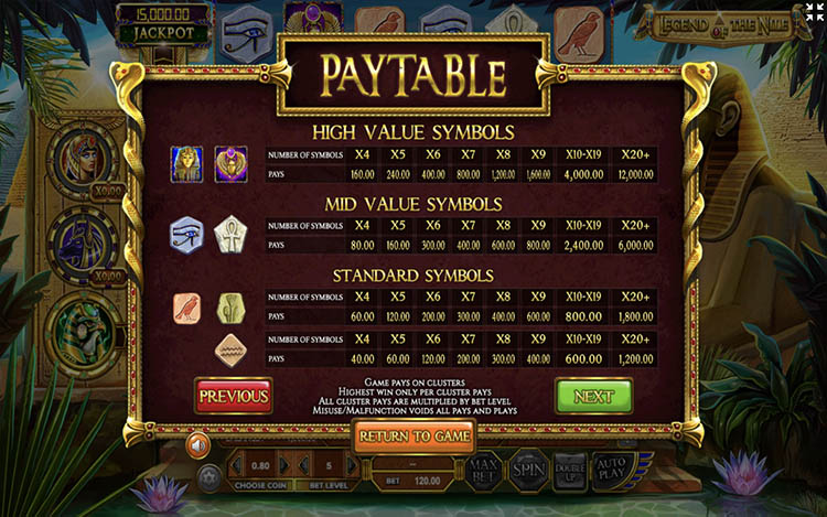 | Анкх, Глаз | - | - | - | 80 | 300 | 600 | 800 | 2400 | 6000 |