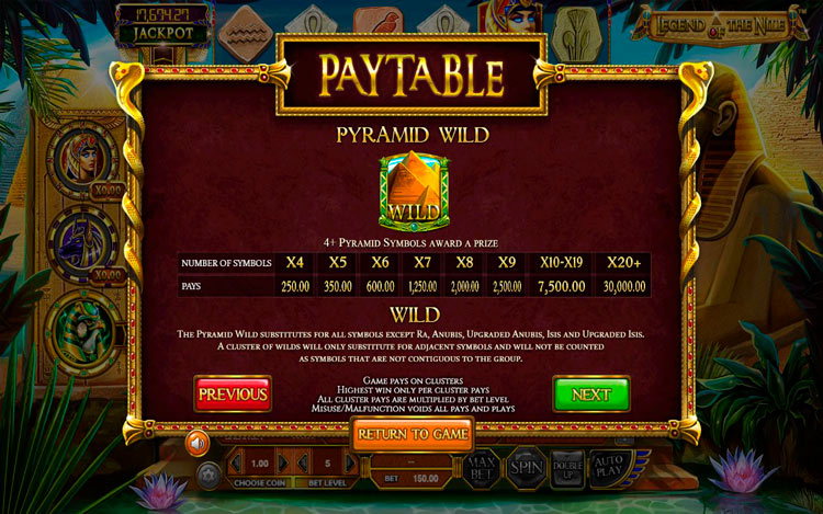 | Пирамиды (Wild) | - | - | - | 200 | 480 | 1600 | 2000 | 6000 | 24 000 |