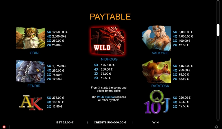 Таблица выплат Lords Of Asgard