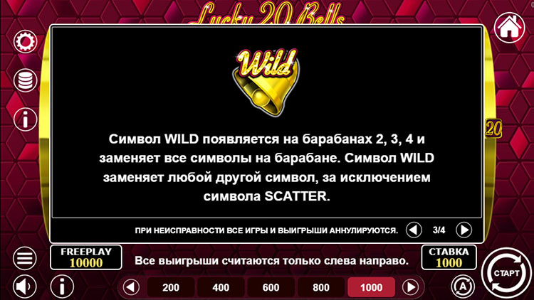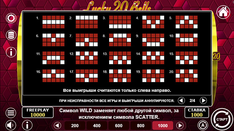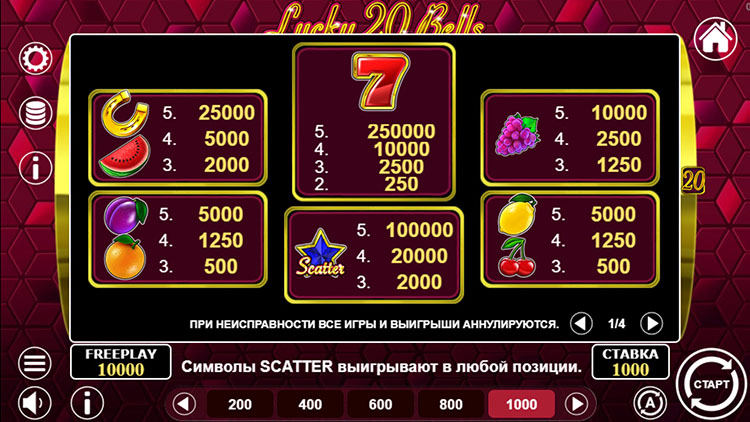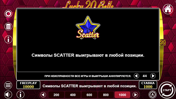 | Звезда (Scatter) | - | 2000 | 20 000 | 100 000 |