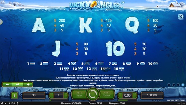 Таблица выплат Lucky Angler