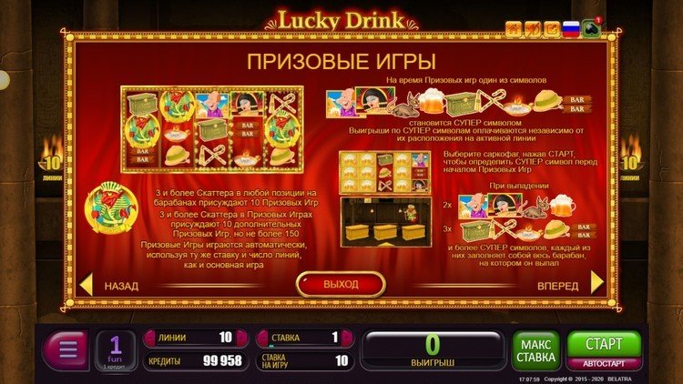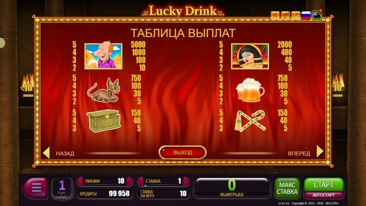 Таблица выплат Lucky Drink in Egypt