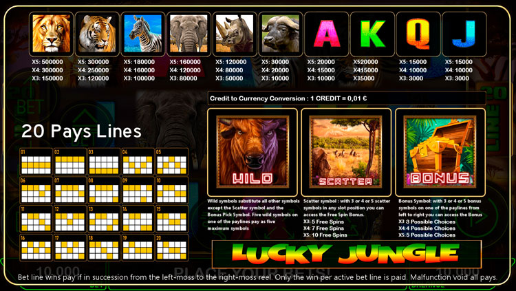 Таблица выплат Lucky Jungle