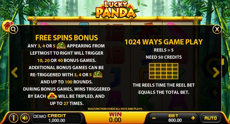 Таблица выплат Lucky Panda