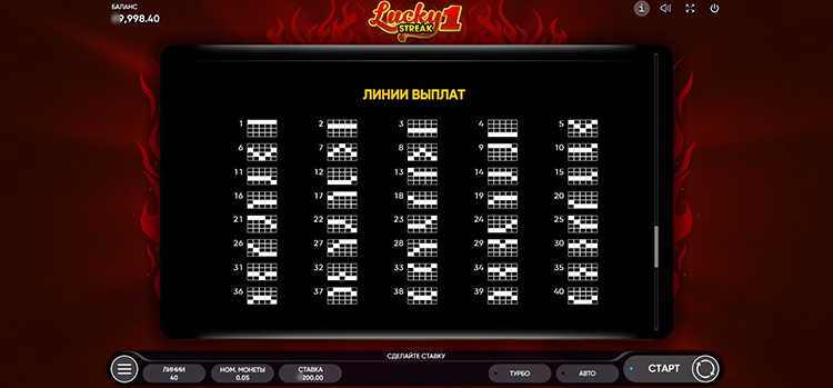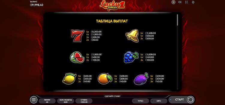 Таблица выплат Lucky Streak 1