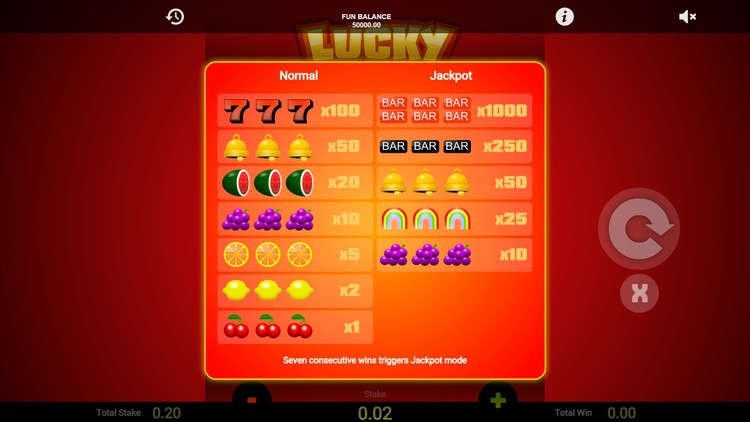 Таблица выплат Lucky Streaks