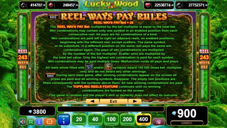 Таблица выплат Lucky Wood