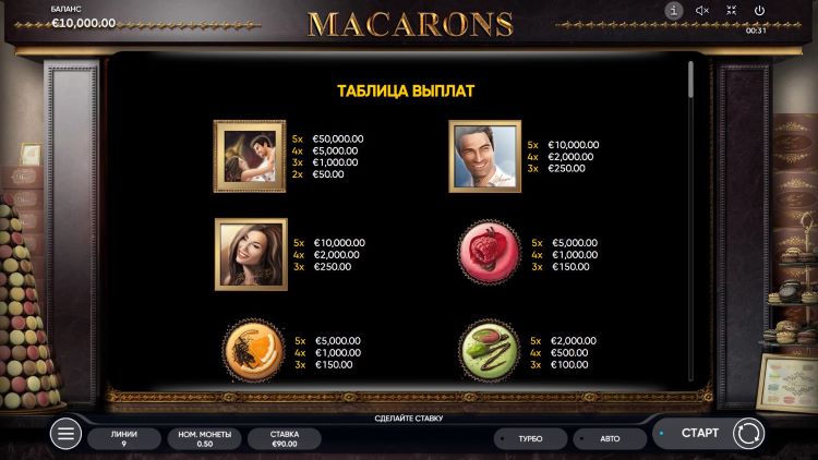 Таблица выплат Macarons