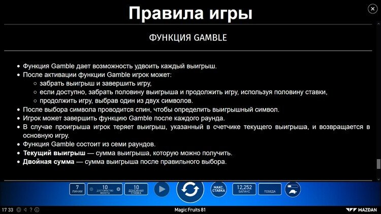 Таблица выплат Magic Fruits 81