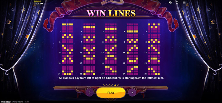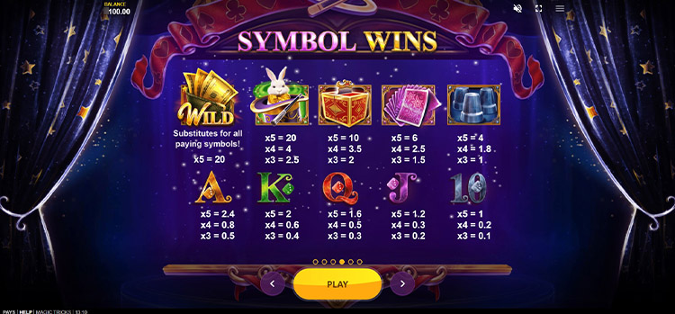 Таблица выплат Magic Tricks
