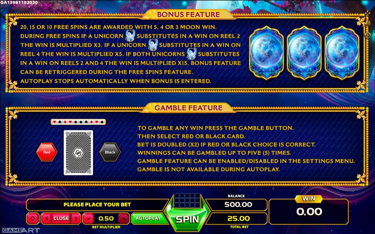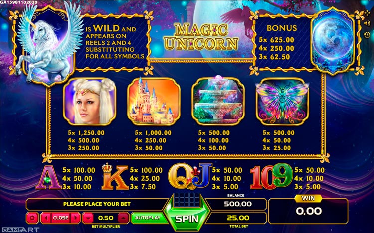 Таблица выплат Magic Unicorn