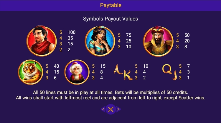 Таблица выплат Magical Lamp