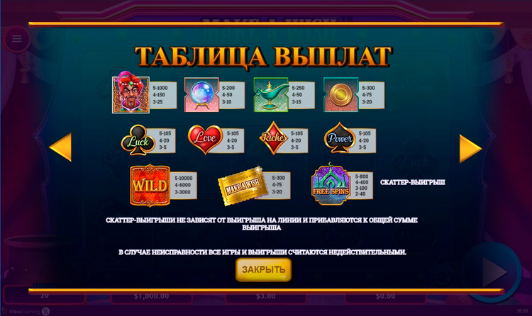 | Красный символ (Wild) | - | 3 000 | 6 000 | 10 000 |