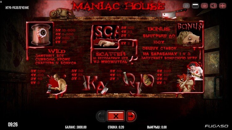 Таблица выплат Maniac House