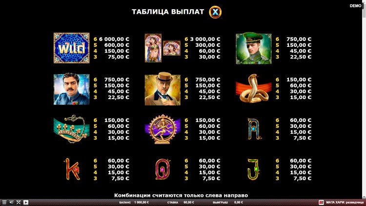 | Мата Хари | 30 | 60 | 300 | 3000 |