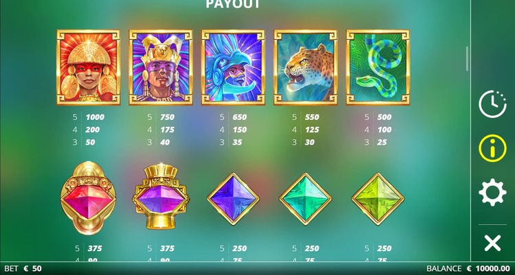 Таблица выплат Mayan Magic Wildfire