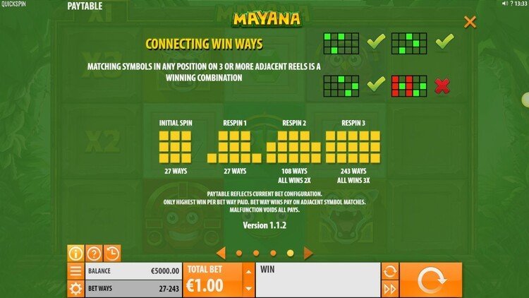 Таблица выплат Mayana