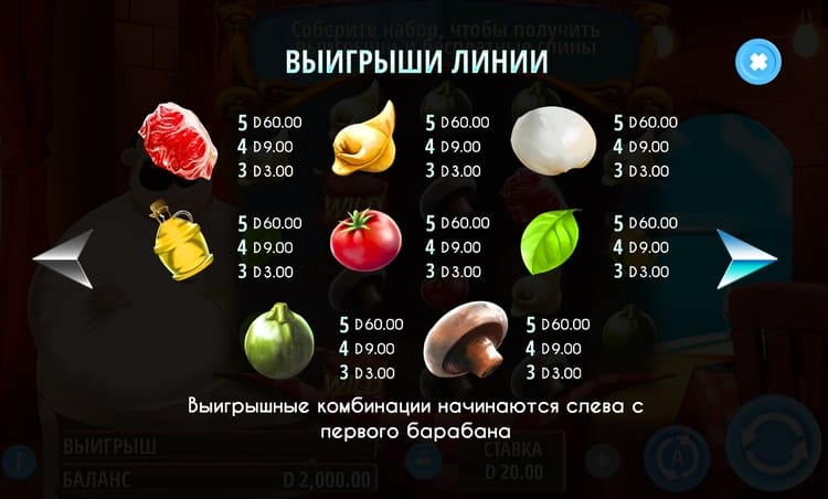 Таблица выплат Mega Chef