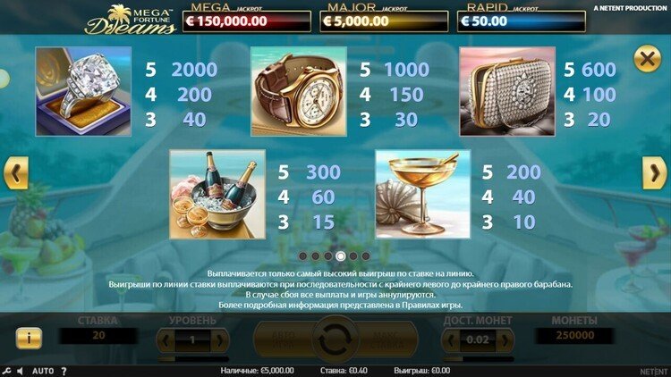 | Пальмы (Wild) | 50 | 500 | 5 000 |