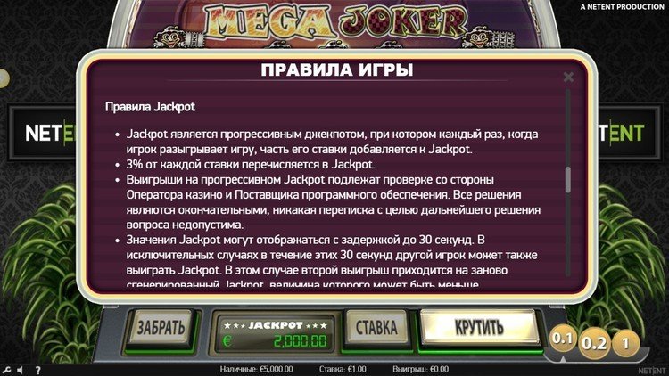 Таблица выплат Mega Joker