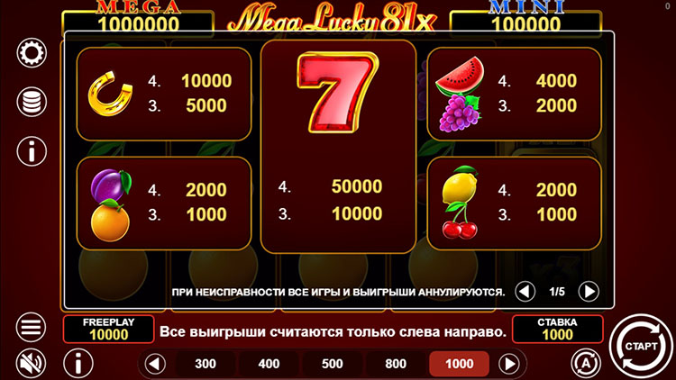 | Лимон, Вишня, Апельсин, Слива | 1000 | 2000 |