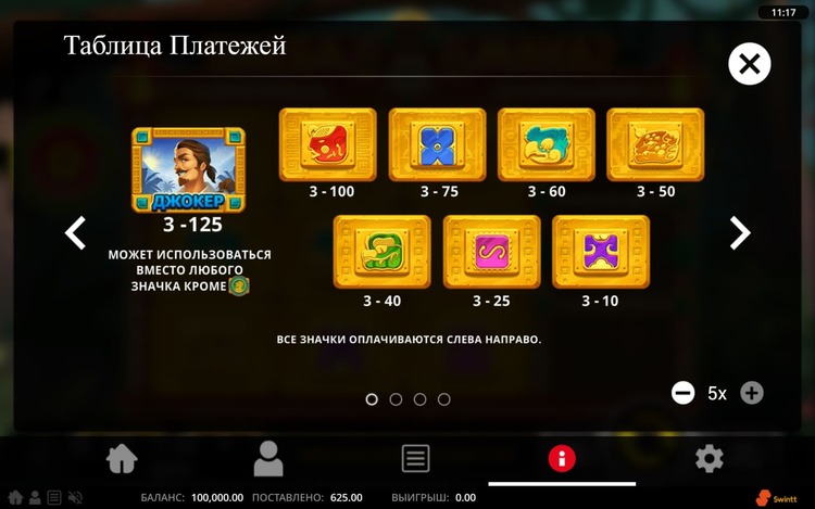 Таблица выплат Mega Maya