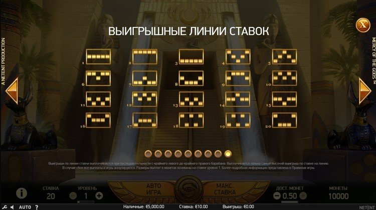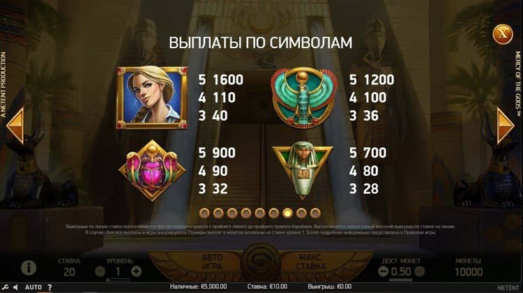 Таблица выплат Mercy of the Gods