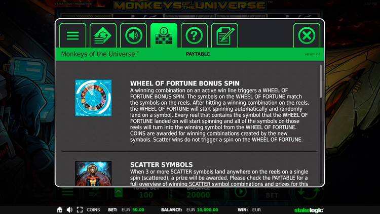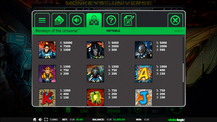 Таблица выплат Monkeys of the Universe