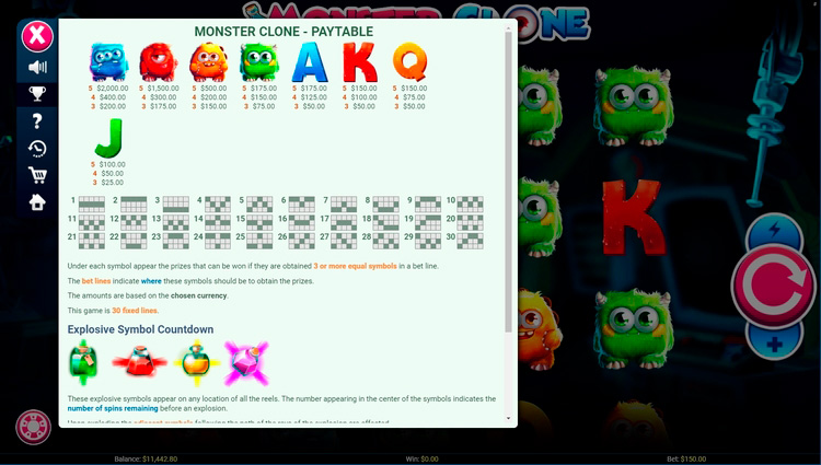 Таблица выплат Monster Clone