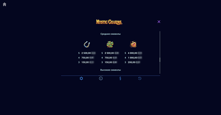 Таблица выплат Mystic Charms